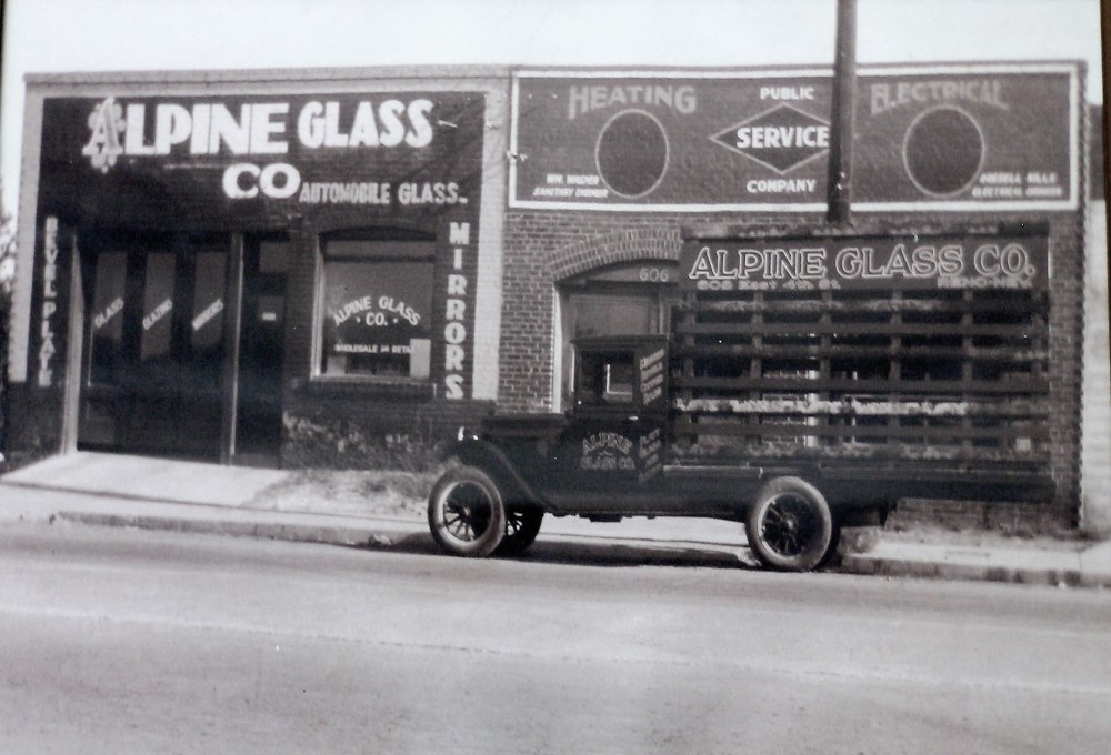Original Location, 1925 ID: 1123 | This file appears in: Alpine Glass Company The Alpine Glass Company was first established in 1925 at 608 East 4th Street, in a small brick building that still stands today. | Date: ca. 1925 | Source: Neal Cobb Download Original File SourceNeal CobbDateca. 1925 "Original Location, 1925" appears in: Alpine Glass Company