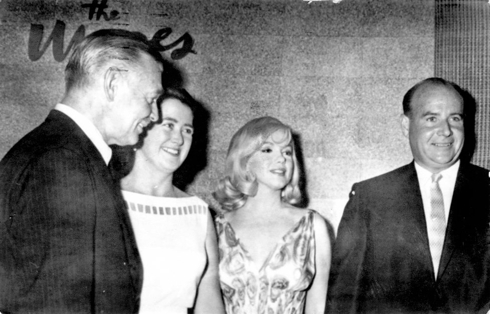 The Mapes Hotel was the production headquarters for the filming of The Misfits in 1961. Here, the film's stars, Clark Gable and Marilyn Monroe, pose at the Mapes with Gladys Mapes and Charles Mapes, Jr. | Date: 1961 | Source: Neal CobbDownload Original File