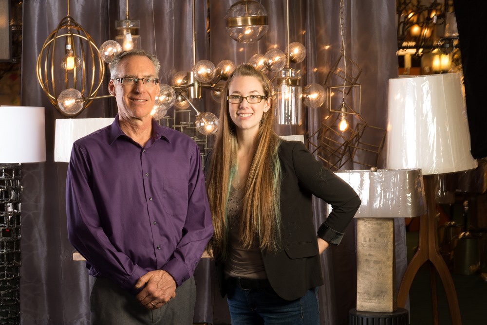 Rader and Sara Rollins, 2015 ID: 1353 | This file appears in: Sewell's Supermarket Rader Rollins and his daughter, Sara, stand inside their family business, Statewide Lighting & Accents, which opened in the former Sewell's Supermarket building in 1973. | Creator: Patrick Cummings | Date: 2015 Download Original File CreatorPatrick CummingsDate2015 "Rader and Sara Rollins, 2015" appears in: Sewell's Supermarket
