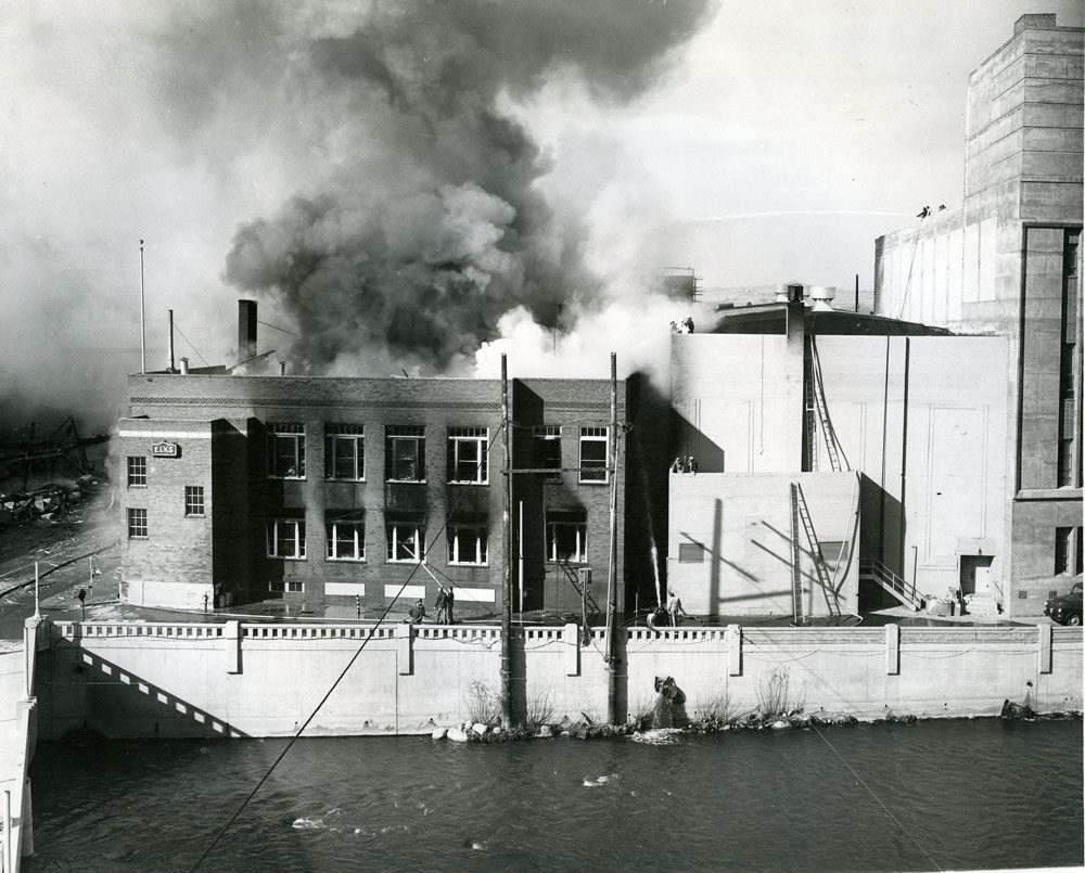 The Elks Home had to be torn down following the devastating fire of 1957. To the right of the Elks Home is the Granada Movie Theater. This photo was taken from the south side of the Truckee River.