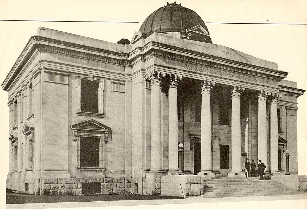 The stately new Washoe County Courthouse, pictured shortly after its completion in 1911. | Date: ca. 1911 | Source: Special Collections, University of Nevada, Reno Libraries Download Original File