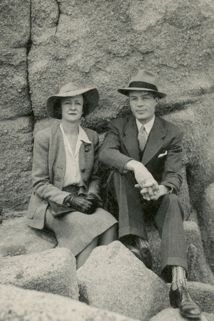 Edward Parsons and Helen Steinmiller Parsons ID: 1735 | This file appears in: Steinmiller/Parsons House Edward Shier Parsons and his wife, Helen Steinmiller Parsons, pose for a photograph at Lake Tahoe. | Source: Alice Parsons Download Original File SourceAlice Parsons "Edward Parsons and Helen Steinmiller Parsons" appears in: Steinmiller/Parsons House