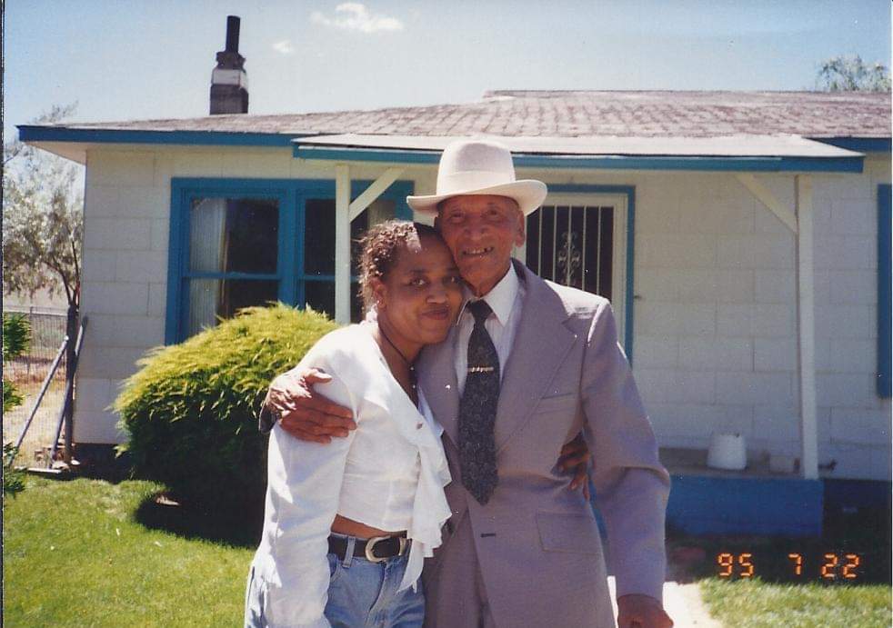 Barbet Bufkin and his granddaughter Pam Payne pose in front of his house in Black Springs in 1995.