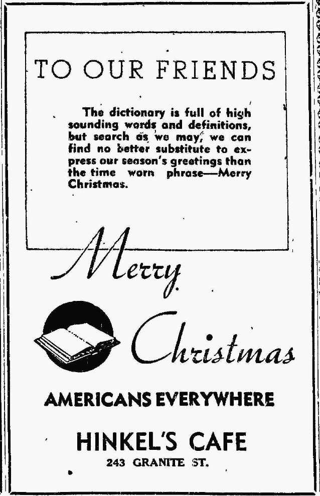 In a newspaper ad from 1943, Hinkel conveyed Christmas greetings to "Americans Everywhere." Born in Germany, Hinkel may have found it especially important to strike a patriotic note during World War II, as the United States fought his native country. | Date: December 24, 1943 | Source: Reno Evening Gazette Download Original File