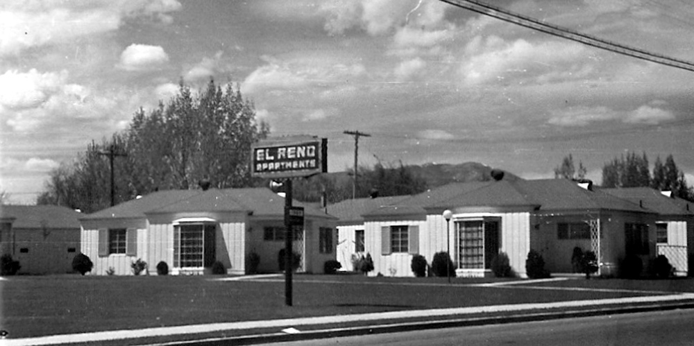 An early photo ID: 97 | This file appears in: El Reno Apartments (original site) This photograph was taken by a traveling salesman from Oregon who found the El Reno Apartments sign an interesting subject for his camera. | Source: Mella Rothwell Harmon Download Original File SourceMella Rothwell Harmon "An early photo" appears in: El Reno Apartments (original site)
