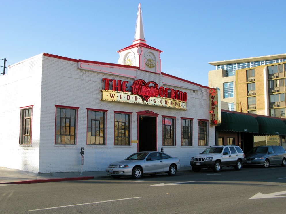In the early 2000s, the Heart of Reno Wedding Chapel moved into the building from its longstanding site just around the corner on Court Street, adding a steeple to the roof and dividing the interior into two separate chapels. The chapel benefited greatly from its location, just one block from the marriage license bureau inside the courthouse, and was open from 8:00 a.m. to midnight, seven days a week.