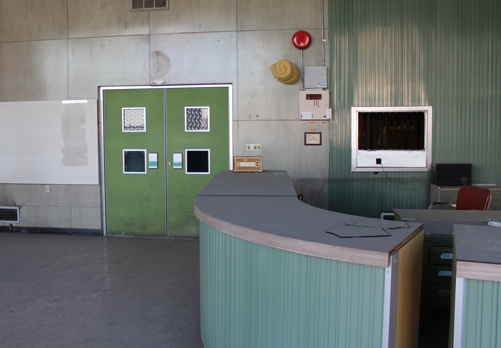Reception Area The 1955 addition housed the company's reception area, with a curved front counter in turquoise. Creator: Alicia Barber Date: 2015