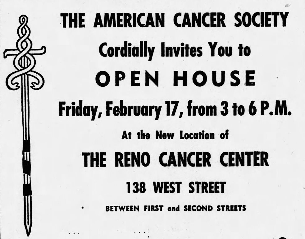In the 1950s, 138 West Street became the home of the Reno Cancer Center, an affiliate of the American Cancer Society which offered medical examinations and information about symptoms and treatment. An insurance company and realtor also occupied offices there through the 1960s and beyond. The property was folded into the new West Street Market in 2008.
