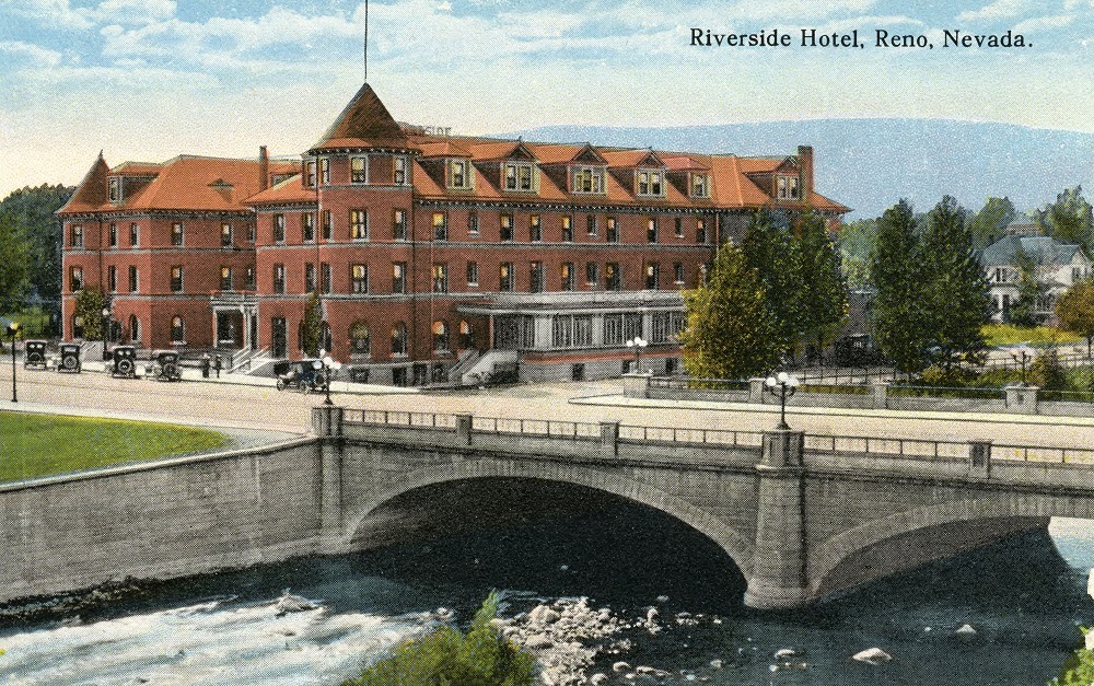 Gosse was born in 1857 in the Sacramento Valley, and later relocated with his family to Silver City, just down the canyon from Virginia City, where his father operated a boarding house. There, Gosse served as captain of Company A of the Nevada National Guard, leading to his lifelong moniker of “Captain Gosse.” In 1896, he acquired the old Riverside Hotel (see separate entry) from Senator William Thompson. Formerly known as the Lake House, it had been Reno’s first hotel, established by Myron Lake. A few years later, Gosse replaced the wooden structure with an elegant brick building, and when it opened in 1906, the four-story Chateau-style hotel quickly became one of the leading hotels in the West. Tragically, the building was destroyed by fire in 1922, dealing Gosse a financial blow that led him to sell the property to George Wingfield, who in turn built the existing Riverside Hotel. Gosse remained active in the Reno Rotary and Elks Lodge and was a strong advocate for enhancing Reno’s infrastructure, from roads to streetcars.