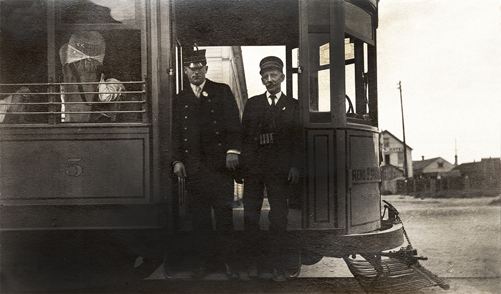 In the early 1900s, the establishment of an electric streetcar system was a clear sign of a city’s growth as well as faith in its potential for future expansion. There was therefore cause for great celebration on Thanksgiving Day, 1904, with the opening of Nevada’s first streetcar line, a three-mile route between Reno and the newly-founded town of Sparks.