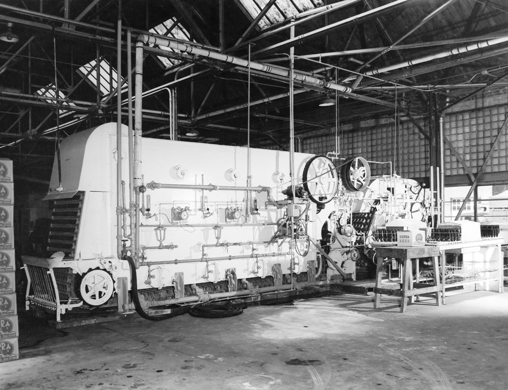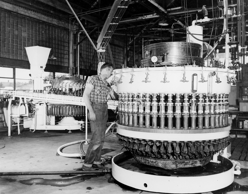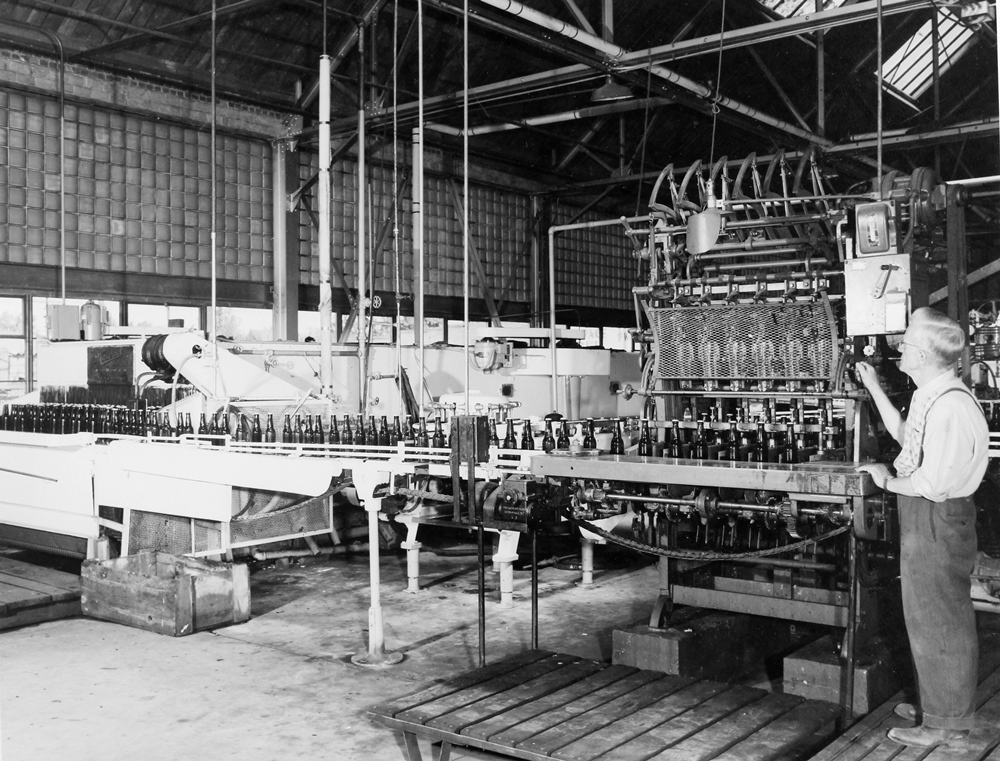 Air conditioned offices ran along the west side of the building, with locker and shower rooms for the workers. Along another side were a series of machines connected by conveyer belts, which carried bottles through the entire bottling process without being touched by hand.