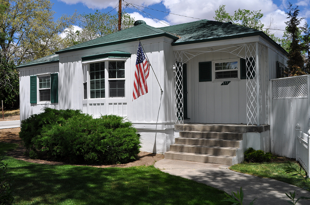In 1936, the architect Paul Revere Williams, who had completed at least two commissions in Reno by that time, designed two houses for the illustrious California House and Garden Exhibition. One was a French cottage, and the other was a three-room “Steel House.” The steel house employed modern materials in such a way as to look traditional. From a distance, the steel walls looked like wood, and the interior wall treatment suggested painted wood paneling.